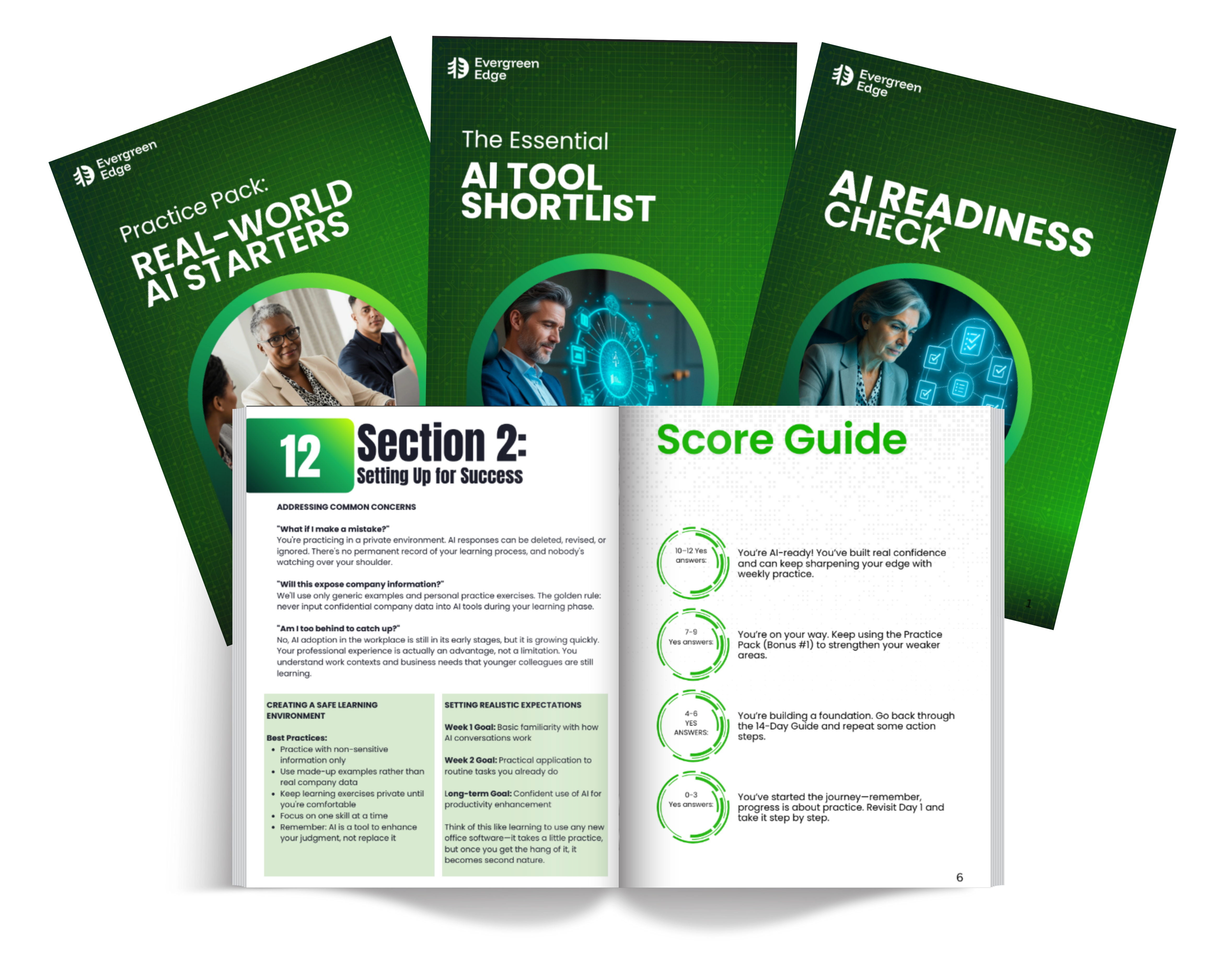 The aim of this guide is to take you from hesitation to confidence, so you can use AI as a tool to support the skills you’ve already built over decades. While no program can guarantee job security, this one is designed to help you stay relevant and valuable in an AI-driven workplace.